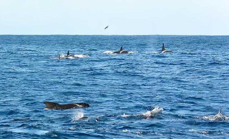 长肢领航鲸强势围观作案虎鲸