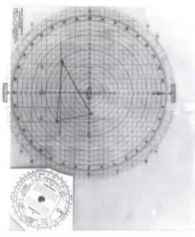 图:40年代飞行员在海上飞行时使用的绘图板,通过空气速度和风量大小,来标记路线。