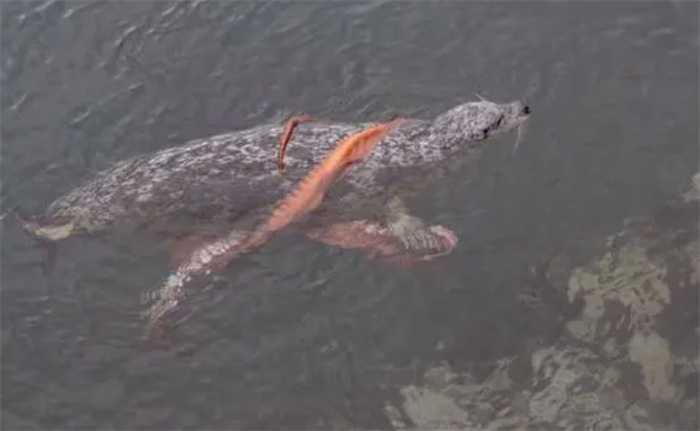 当男子的船距离它越来越近时,男子突然发现情况似乎不妙,原来这只海豹的身体被一只章鱼给缠着了,而且在水里不断的乱扑腾,男子认为如果再这样继续下去的话,那么吃苦头的一定是这只小海豹了。