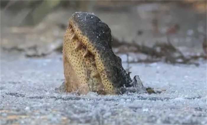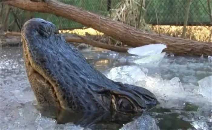 它们本身也就是一种冷血动物,所以当河流结冰时它们也会被冻僵,于是这些聪明的大鳄鱼们,就在河流结冰之前把自己的嘴巴和鼻子露在外面,以至于它们自己可以更容易的进行呼吸,