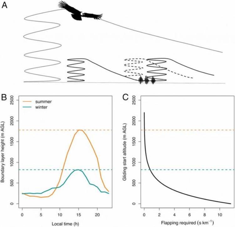 这项研究已于周一发表在《美国国家科学院院刊》上。研究人员发现安第斯秃鹰只在约1%的飞行时间内扇动翅膀。其中大部分发生在起飞和接近地面飞行时。秃鹰的翱翔耐力令人印象深刻,但这些沉重的鸟类在拍打翅膀上消耗能量时,必须选择战斗。