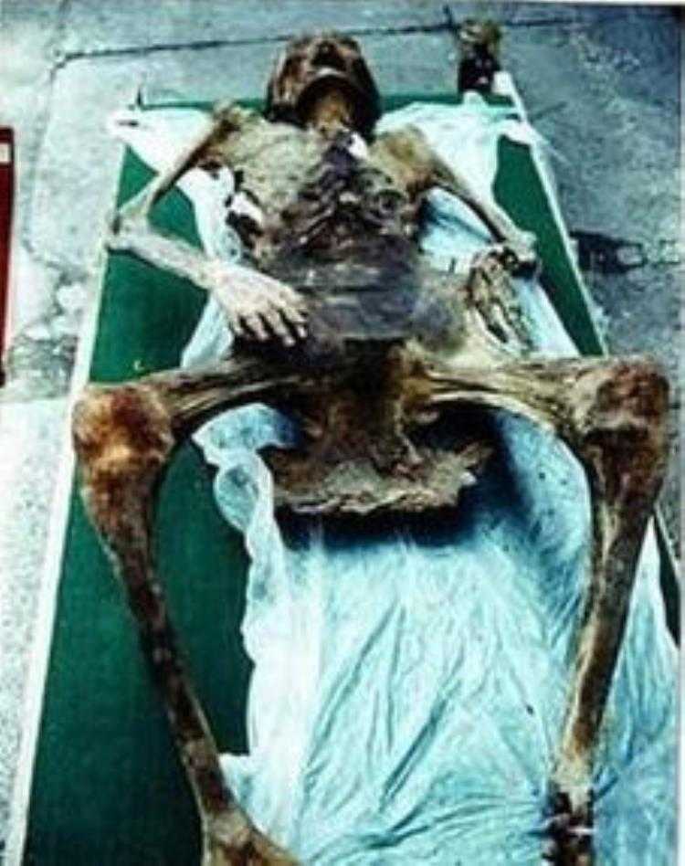 这个被命名为“特灵娜”的女性胎儿,怀孕古尸被埋在苏联最寒冷的地区华耶西伯尔岛上,这里温度低至摄氏零下70度以下,怀孕古尸被埋在一堵雪墙里。死者年龄有20多岁,胎儿已逾七个月。