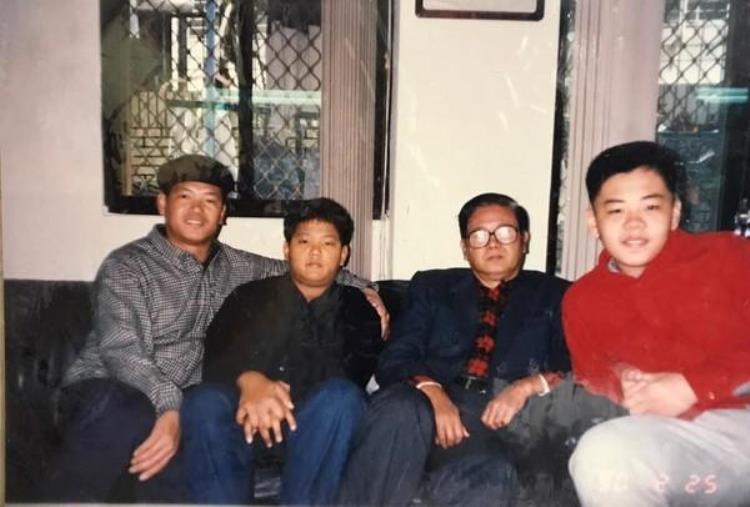 陈建州(左一)与弟弟和父亲陈培元在家中的合影