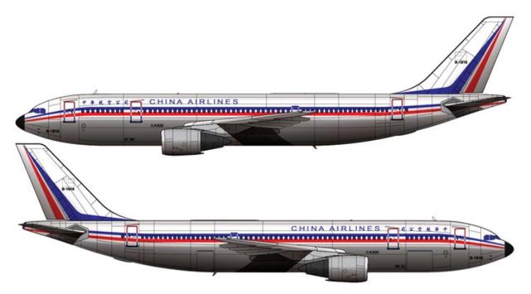 本厂长绘制的中华航空B-1816号A300-622R型客机二视图