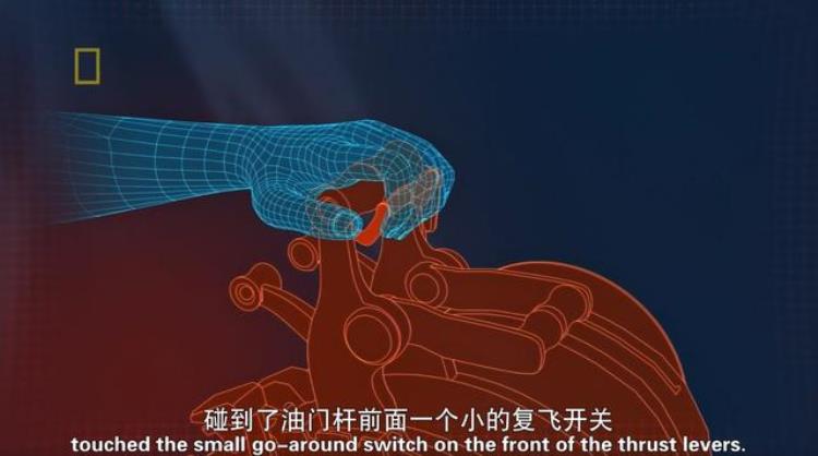 空难的起因是缺乏经验的副驾驶无意中触发了复飞控制手柄(红色部位)