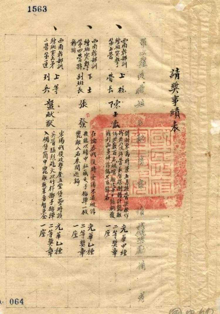 我留意到突击队第五营营长陈士瀛也在请奖事绩表上,他的功绩是:开浙东为时仅五月,该营与敌作战共八次,该营长智谋制胜,计毙敌伪共数百名,破坏敌汽车十余辆,获战利品多件,俘伪共百余名。如此英雄人物,岂能默默无闻无留照,我把他给找出来了。