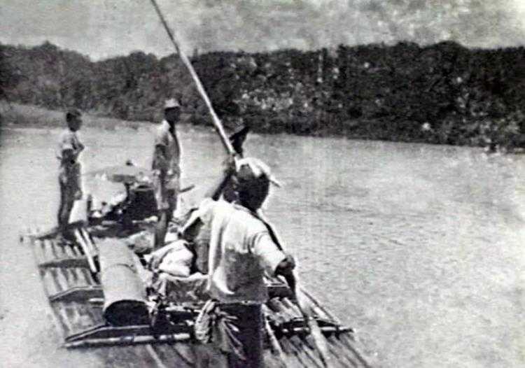 1942年7月,“郁金香”分队在铜鼓以竹筏渡河
