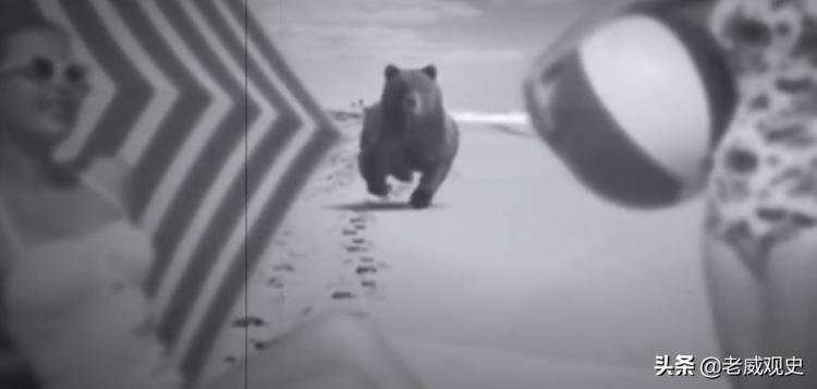 士兵们见状赶紧停下车,对着姑娘们大喊,不要动,不要害怕,它是一只好熊,它不会伤害你们。 士兵们下车后立即向海边的姑娘们跑了过去,嘘寒问暖,就差借她们一个强壮的臂膀了,其实沃铁只是想去海里游个泳,真正想把妹的应该是那些士兵们。