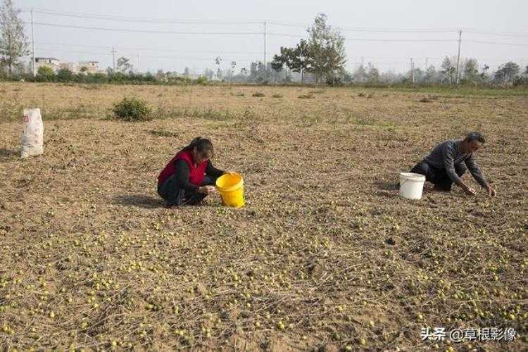 大叔大妈正在捡拾的可不是农作物,而是地里生长的一种野果:马泡瓜。你也许会怀疑,谁家地里会长出这么多杂草,其实这是由于土地流转之后的管理不善造成的。大叔介绍,他们将野果取捡回家之后,可以取籽榨油,有村民仅籽就存储了4000斤呢。