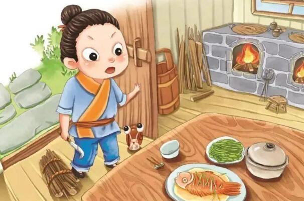 农民决定要弄清楚这件事情,所以他装作下地干活的样子,然后赶回家想看看是哪位不留名的好心人帮忙。结果看到在水缸里走出一位漂亮的女人出来做饭,做完之后又回到水缸。农民感觉十分惊奇认为是自己看错了,但是接连几天都是这样。