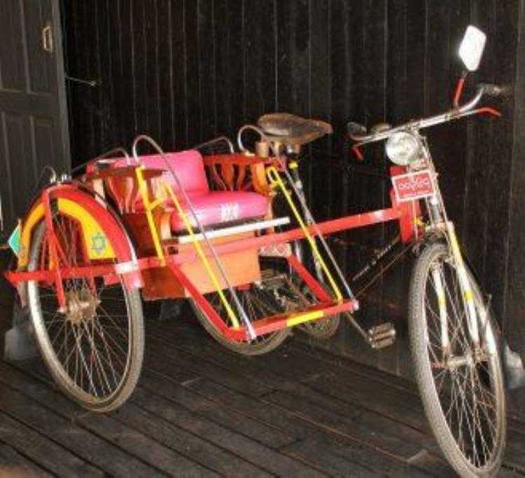 三轮车在没有公交车和汽车等公共交通的郊区或农村地区被用作主要的公共交通工具。它于1930年左右在曼德勒(旧首都)引入。乘客座位在车夫旁边,而不是后面。它不大;因此,它可以很容易地穿越小街道。只有两个乘客的车厢:乘客背靠背坐着。对于短途骑行,费用约为700缅元。4.用轻吻的声音招呼服务员