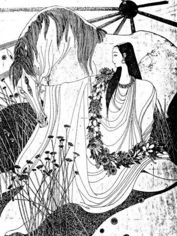 那匹马听到蚕女母亲的话,却惊喜跳跃、躁动不停,挣断缰绳跑了。过了几天,蚕女的父亲骑着马回来了。从这天开始,这匹马就不断地嘶叫,不肯吃草喝水。