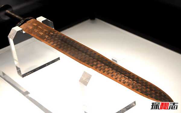 春秋晚期越国青铜器,国家一级文物,因剑身上被镀上了一层含铬的金属而千年不锈,1965年冬天出土于湖北省荆州市江陵县望山楚墓群中。剑通高55.7厘米,宽4.6厘米,柄长8.4厘米,重875克,极其锋利。