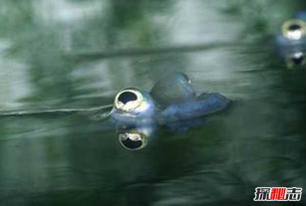 四眼鱼,又称上瞥鱼,主要分布在中美洲和南美流域,眼睛十分奇特,极像蛙眼,其构造也十分复杂奇怪。因为眼睛的中部都由一条黑色的水平线将其分成两个平均的大小,其水晶体和瞳孔也被分成两部分,看起来就像有四只眼睛的鱼,所以被称为四眼鱼。