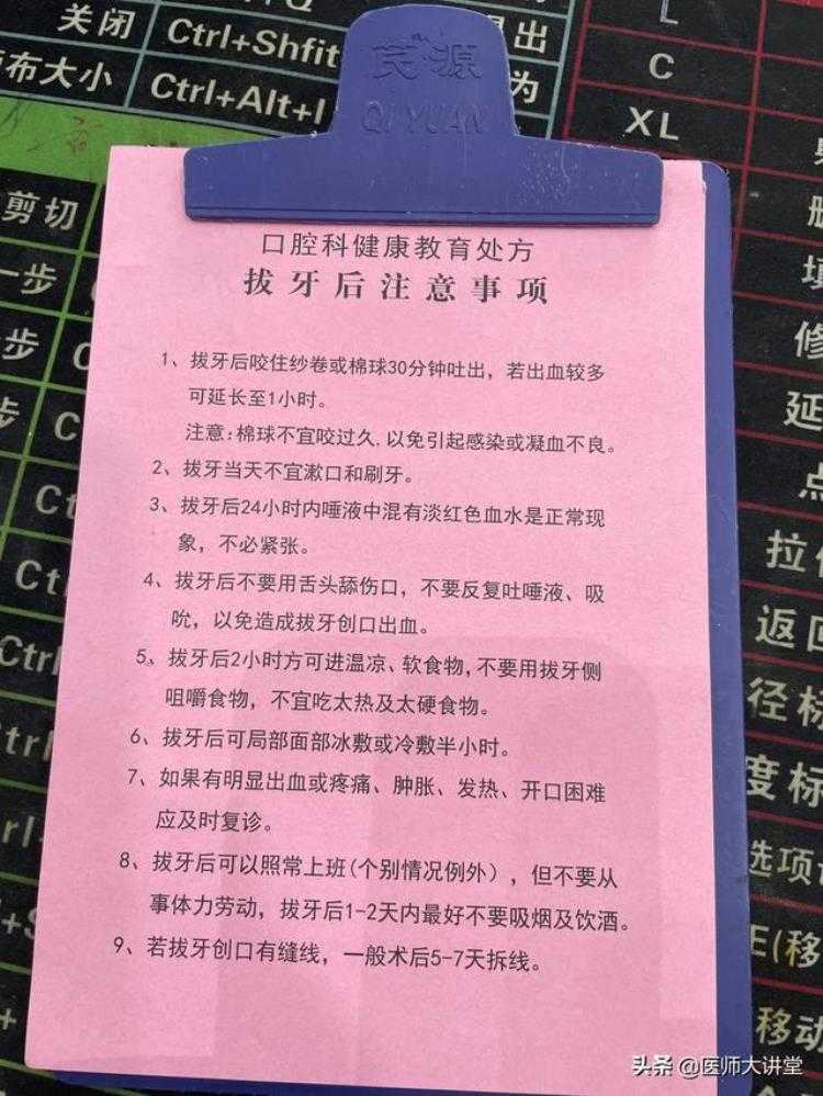 5拔牙之后术后护理工作。给患者拔牙后说明书。