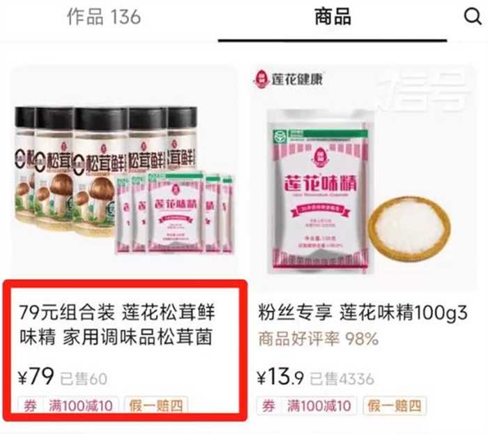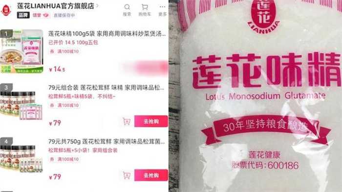 9月12日有网友发现,作为国货品牌的莲花味精,分别在抖音上城和直播间上架了价格为79元的商品套餐。