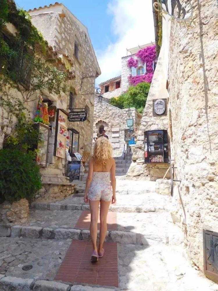 埃兹(Èze)小镇建在法国蔚蓝海岸400米多高的山上,位于尼斯和摩纳哥之间,因在岩壁上建房方式很像老鹰筑巢,因而有"鹰巢村"之称,是个隐藏于山上的一个中古世纪小镇。这里的山顶植物园(Jardin d'Eze)是俯瞰地中海美景的绝佳之地。