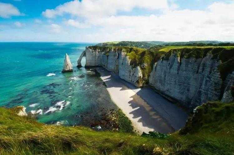 埃特勒塔(Etretat)是北诺曼底最受游客欢迎的目的地之一,这里有众多含早餐旅馆和超市,而最吸引人的要属其形态奇异的悬崖峭壁和天然形成的三个拱形峭壁。这三座山崖, 借助于大自然的鬼斧神工, 被雕琢成大象的样子, 神似广西桂林的象鼻山.法国人形象的说成是一家子,公象,母象和小象。