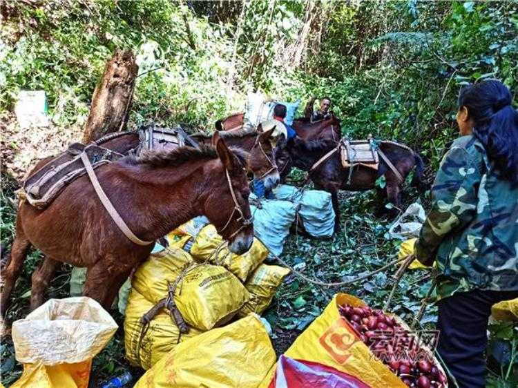 杨贵保户今天全家出动,10余人浩浩荡荡进山,从日出到日落,8亩的草果地共摘了3500多斤草果,老人还专门找来了9匹骡子,及时将装袋的草果尽快驮回家。他告诉笔者,“女儿在县城开了店,顺带销售一些农特产品,我家草果虽然今天才摘,但已经预定了700多斤了,我得尽快把这些货交出去,虽然都是按预定价5元买的,能买个2万多元,但是我也知足了,毕竟以前大箐深山里没有收入的。”