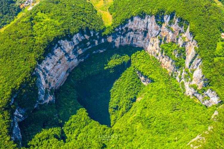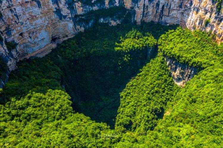 按照天坑的分级原则,深度与宽度均超过500米的为超级天坑,全世界仅有3例,全部在中国。其中,最大的一例就是重庆奉节的小寨天坑。