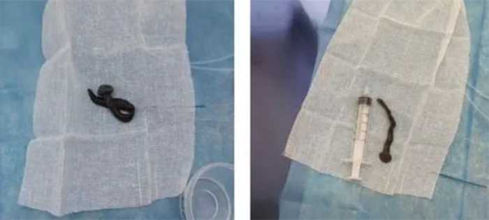 因为蚂蝗的身上有吸盘,可以吸附在人体的气管壁上,所以如果想要直接用钳子揪出,是会损伤到患者的气管道,有可能会引起患者的一系列并发症,另一种情况,如果在取出蚂蝗的过程中无意间将蚂蝗的身体揪断,那么还需要进行第2次手术。在紧张的协同工作下,医护人员终于通过支气管镜将蚂蝗整体取了出来。测量发现蚂蝗体长大概有8厘米,在取出以后韦某的咳嗽现象已经完全消失。