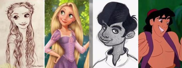 2、任何一个动画人物都是在画板上开始构建的,在画板上人物的面容、身高、肤色、着装都将不断被修改,直到最后百分之百确定好他们的造型时,画师才会停止修改。很难想象你们喜爱的角色,像是长发公主、阿拉丁他们的动画初稿其实是这样的,你能相信吗?单单看他们是如何从一笔一划的线条到形象逐渐丰满,你就会觉得人物最初的样子和电影里的截然不同。
