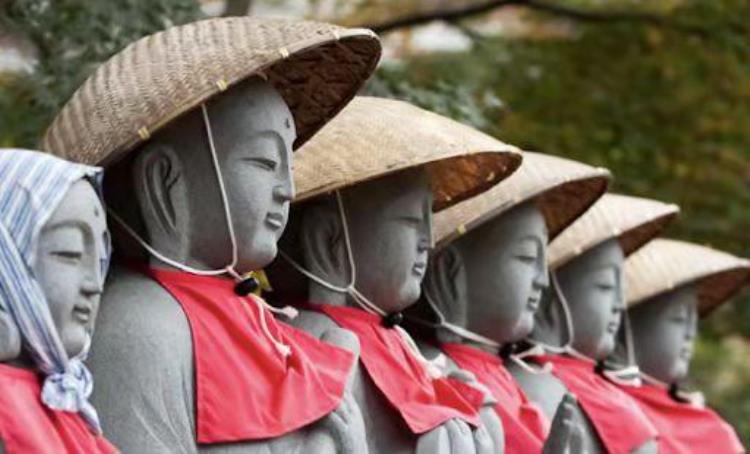 十多年前初到日本留学时曾注意到一个有趣的现象,在寺院里或者路边小道两旁,经常能看到头戴红帽或者围着红围嘴的小佛像,少则一两尊婉然结跏趺坐,多则几十个大小不一散列站立,或左手拿宝珠,或右手持锡杖。这些孩童样貌的小佛像有一种天然的萌感,不仅深受日本民众喜欢,也总能成为各国游客镜头下象征着日本佛教之生命气息的特写。后来才知道,如此可爱的小佛像竟然是孩子们的守护神——育子地藏(日语:子育地蔵)。不由得心生疑惑:地藏菩萨为什么变成了孩子的模样?“育子地藏”与中国常见的抱着男童的“送子观音”有什么关系吗?