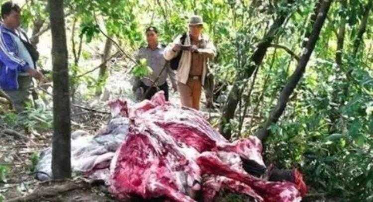 而这头大象被发现时,只剩下光秃秃、血淋淋的骨头。象牙、象皮已经被人残忍割下。