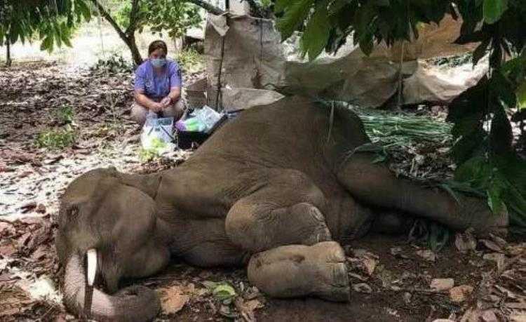 据救援人员拍摄到母象生前最后的影视画面显示,母象一直把自己的嘴巴埋在水里。据猜测,母象可能过于痛苦,不得不用这样的一种方式,以防止其伤口吸引来苍蝇或是蚊虫。