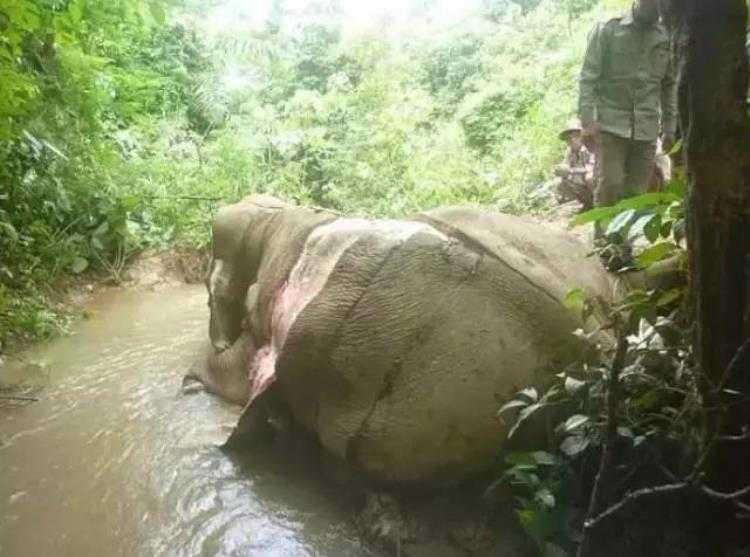 这头大象是2018年被发现的。它躺在缅甸的丛林深处,背上的皮被剜开,露出里面的血肉,靠近前肢的象皮被剥落,连着仅剩的皮肤组织浸泡在水里,身上其余的皮也被划出一道道均匀的口子。