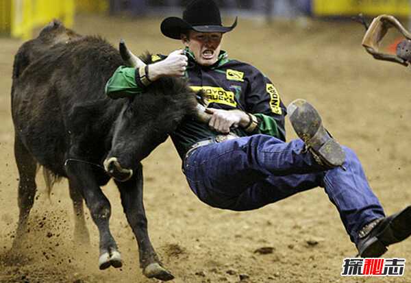 骑手只能在公牛的背上持续8秒,大多数人并不能坚持那么长的时间,有时会被扔进空中,很有可能的是,愤怒的公牛会冲向骑手的头部,把他干掉,从看台后面观看的观众甚至都不安全。