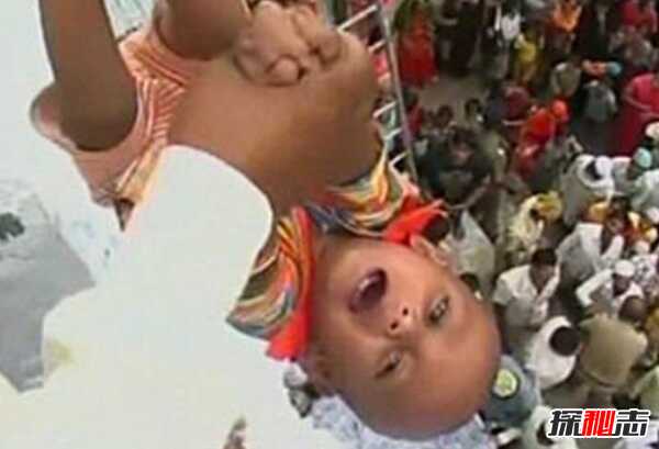 这种做法于2009年在印度被禁止,人们相信从50米高的高楼上空将一个婴儿摔下,能够确保儿童的健康,并为参加这一仪式的儿童家庭带来繁荣。