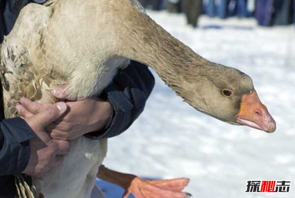 在西班牙的一个小镇上,有些350年的传统庆祝活动,那就是将一只鹅的脖子用绳子吊着,让人们拉着绳子,然后直到它的头掉下来。现在,由于法律的改变,鹅在被勒之前就被杀死了。