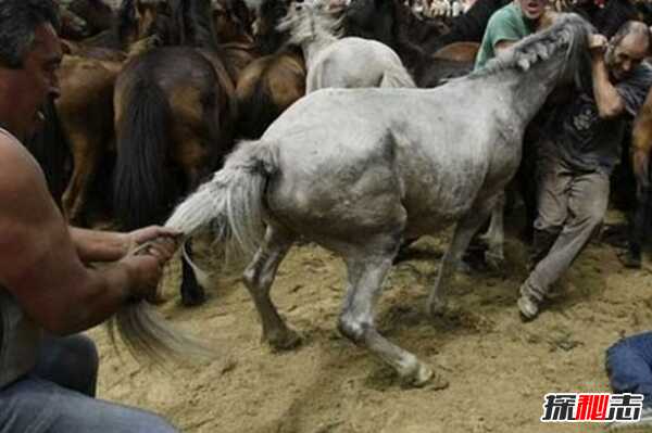 在过去的400年里,西班牙加利西亚居民为了好玩,便在一个晴朗的日子喝醉酒后爬上一座小山,把野马追到镇上,把它们摔在地上,将它们的鬃毛和尾巴剪下来。