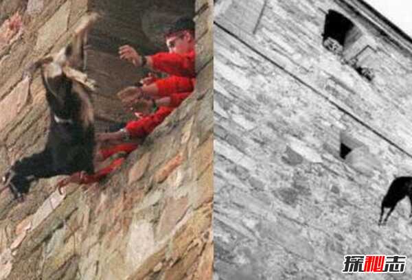 看起来西班牙好像是最讨厌动物的国家,每年,有些地方的人们会将一只山羊从教堂的高楼扔出去,传说,这一切始于一位牧师的山羊,信奉这一传统的人声称,山羊只会从15英尺高的地方掉下来,不会受伤。