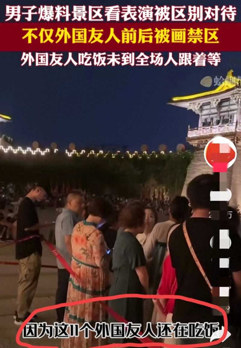 其中主办方竟然要两千多名游客给11位外国人让座,将两千多名游客赶到警戒线外,并且不允许游客挡在外国人前面,一条条措施实在令人气愤和不满!