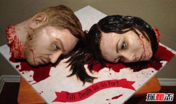 这个蛋糕是一个行为艺术者制作的,她制作了自己和老公的头颅,主要是为了配合恐怖电影主题婚礼,简直吓人到不行。
