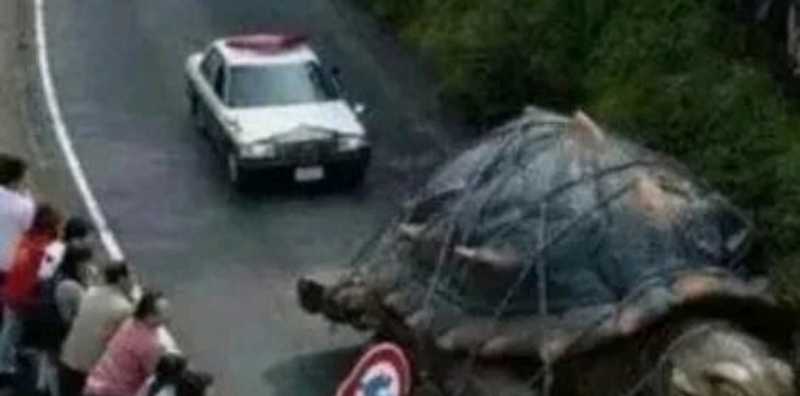 警车保护着这只比卡车还要大的古怪王八。这件事情引起了众多居民的好奇和恐惧。王八身上不仅长满了浓密的鳞片,而且体形庞大,完全不同于普通的王八。人们不禁开始猜测,它是从哪里来的,为什么会出现在黄河这里?