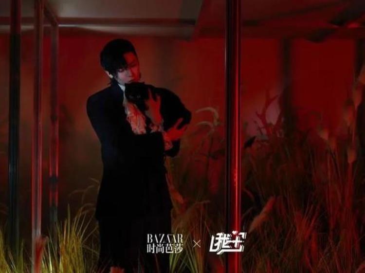和他一起出镜的是一只黑猫,有着圆圆的包子脸,带一点不合群的倔强在摄影棚里躲着人,但并没有太胆怯,浑身发亮的黑色毛发,显得优雅而灵巧。
