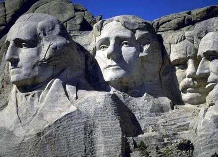 美国南达科他州拉什莫尔山,山高1800 多米, 山上刻有华盛顿、杰斐逊、罗斯福、林肯四个巨大的石雕像,石像的面孔高18米,鼻子有6米长,华盛顿肖像是四人中唯一的胸像,其余三人只雕出了头部形象。也许有人好奇了,美国这么多总统,为什么只有他们四个能被人雕刻纪念呢?