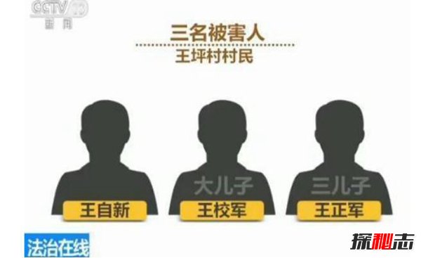 根据案件可以知道,三名被害人分别是王坪村村民王自新和他的大儿子王校军、三儿子王正军,而王自新的二儿子正好在当天有事在外所以逃过一劫,警方为了保护其人生安全,就把他放在一处比较安全的地点,并且全力搜寻王扣扣。在2月17号的时候王扣扣自首。