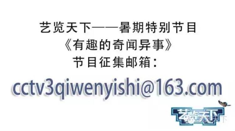 快来,快来,节目播出时间就在7月31日本周日(明天)19:00分,CCTV3,艺览天下带您看,有趣的奇闻异事不要走开哦^O^