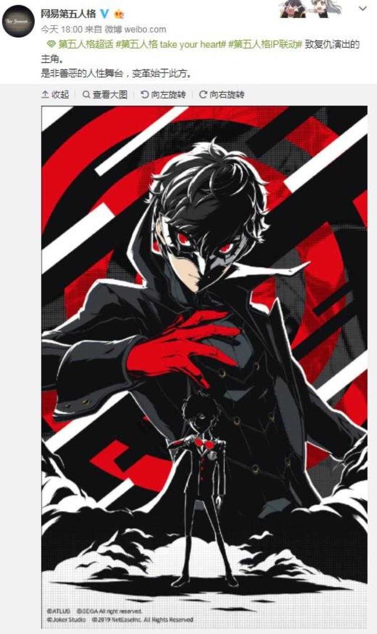 网易在上个月《第五人格》的官方微博宣布了《第五人格》将会与日本热门RPG游戏《女神异闻录5》联动的消息。此次联动活动将于8月8日正式开始,国服和日服都确认会推出。而这也是《女神异闻录》系列首次和中国手游联动。今日官方发布联动角色形象,一起来看看吧。