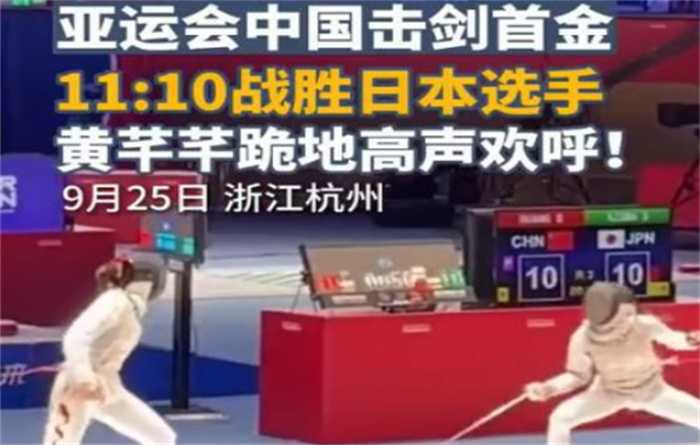 根据媒体最新报道,在第十九届杭州亚运会击剑比赛中,中国剑客黄芊芊在本场比赛中以11:10的分数绝杀日本选手赛,当胜利出现的那一刻,黄芊芊跪地怒吼,这不光是一场简单的胜负较量,更是国家荣誉和民族情感的教量。