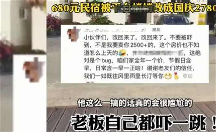 680元民宿被平台私自将价格调成2780元 老板懵了