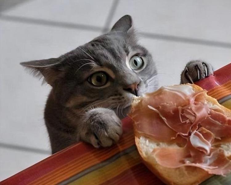 6、自从养了猫,吃什么它都好奇的不行,直接就冲上来桌上,开始嗅闻模式,这里闻闻,那里舔舔,馋的不行,还想上手抓。