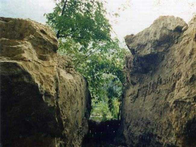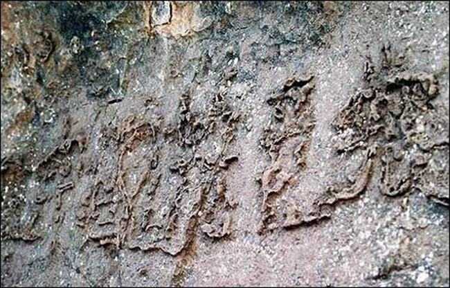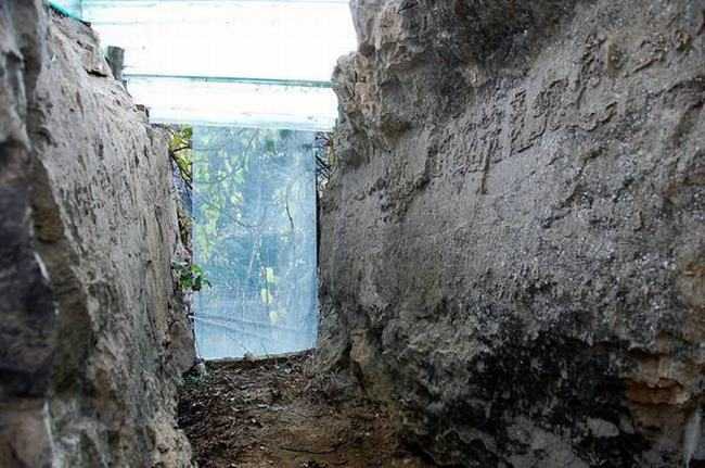 后面专家研究之后认为这块大石头是从悬崖陡壁上面掉落下来的,甚至于可以看到石头掉下的痕迹,石头掉下来成为了两边,有字的一面是右边的那块石头。