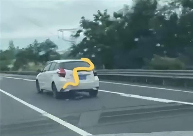 7月3日,在湖南省的一条高速公路上,有网友拍摄下了非常离奇的画面:在其前方的车辆尾部,竟然盘踞着一条大蛇!