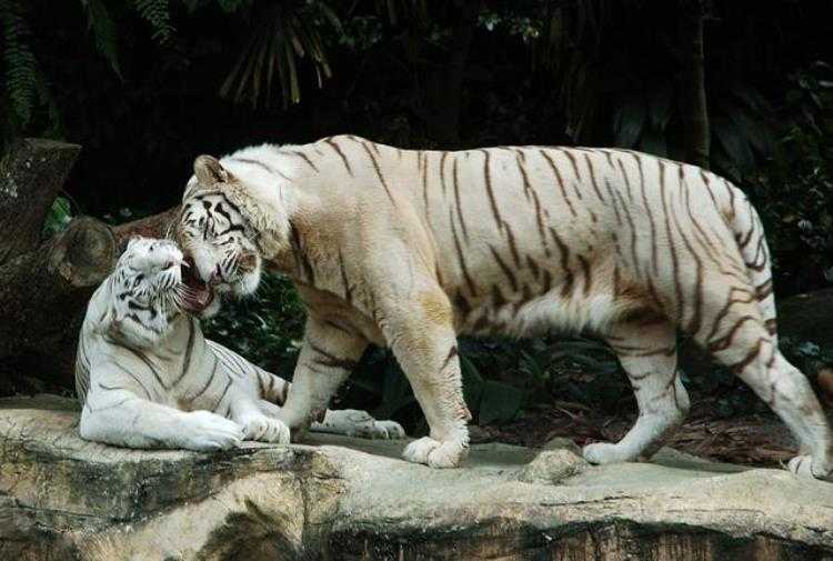 人类确实对这些特殊颜色的动物情有独钟,包括白虎也是一样的。1951年,人们首次在野外发现了白化孟加拉虎,然后同样对它进行了培养和繁殖,如今世界上的白虎都是这一只白化孟加拉虎的后代。