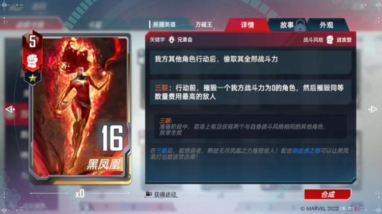 万磁王代表的是“装备流”,这个流派对装备有一定依赖性,所以虽然强势,但却比不上黑凤凰的“献祭流”,她可以偷取己方角色的攻击力,来达到强化自己的目的,而她的“三联”特殊效果,不仅能清除己方的0战力成员,还能摧毁同等数量的敌方!既能最大化强化自身,又能清除“废物”队友的同时给予敌方打击,这不是最强是什么?就是用的方式有些残酷罢了。